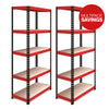 Pack of 2 1800x900x450mm 200kg UDL 5x Tier Freestanding FastLok RB Boss Unit with Red & Black Powdercoated Steel Frame & MDF Shelves